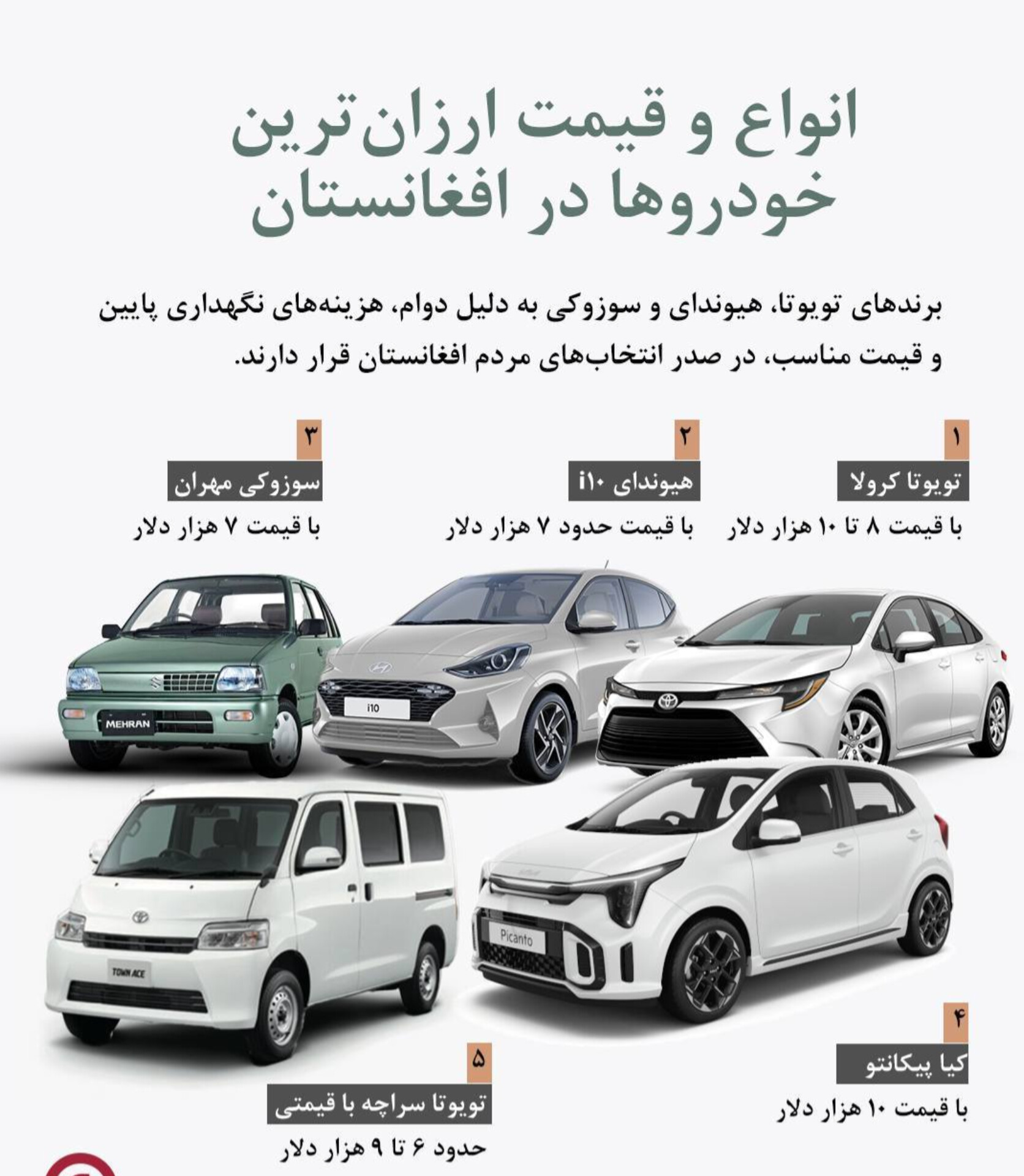 انواع و قیمت ارزان‌ترین خودروها در افغانستان