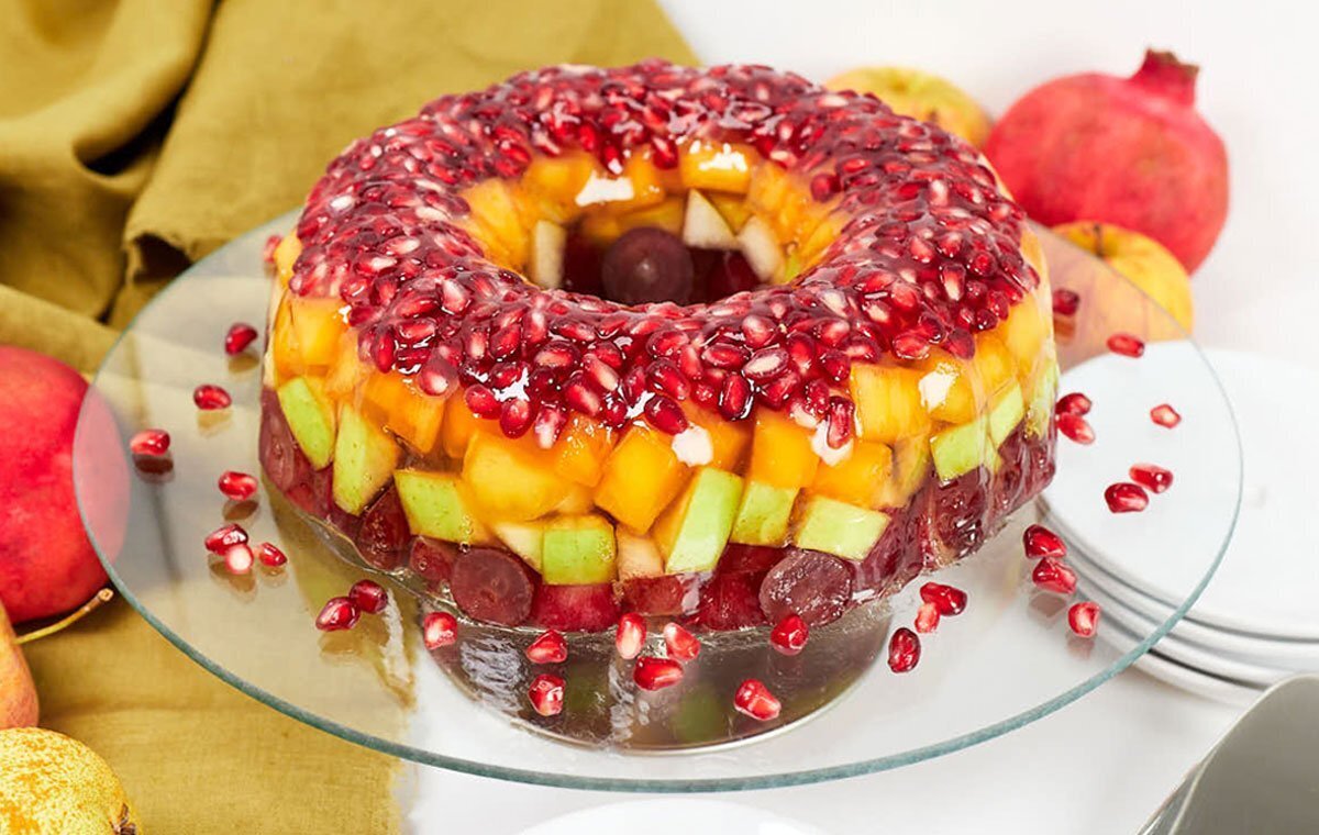 اگر بهدنبال طرز تهیه ژله انار برای شب یلدا به شکلی متفاوت هستید، این زلهی رنگارنگ را به شما پیشنهاد میدهیم که از ترکیب ژله، دانههای انار و میوهای رنگارنگ پاییزی مثل خرمالو، سیب و… درست میشود.