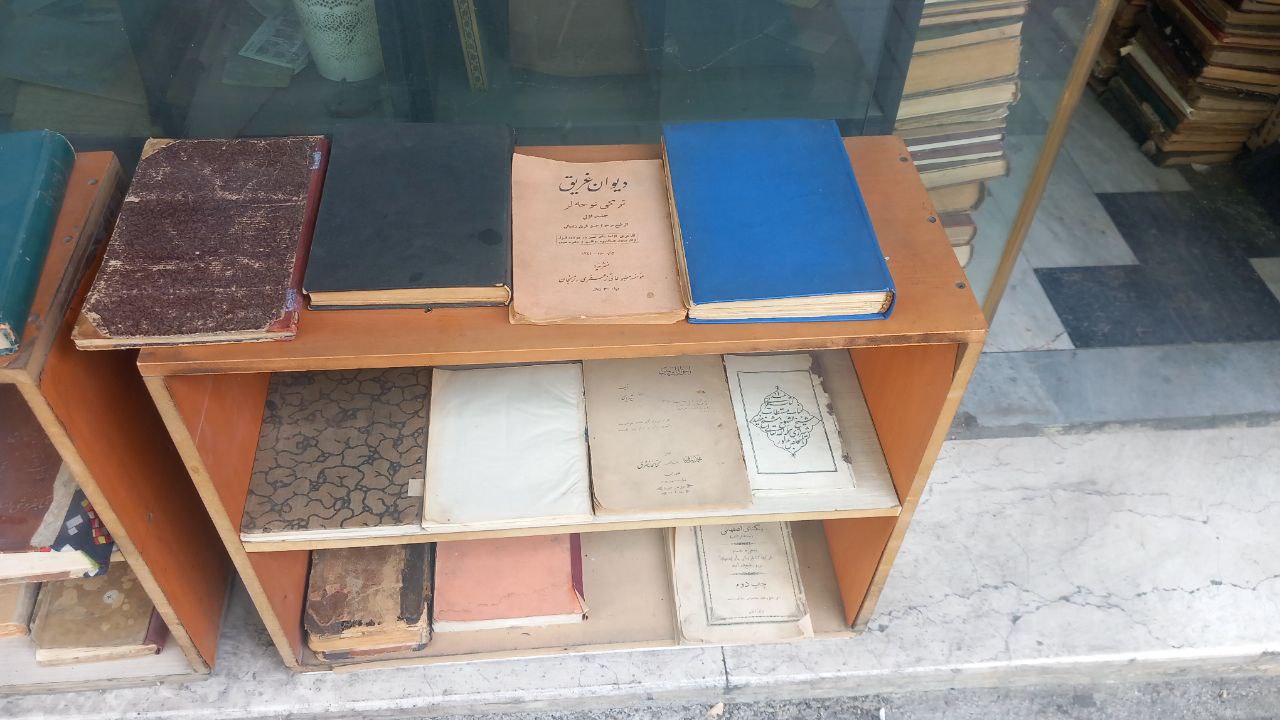 یکی از فرعیهای خیابان انقلاب نزدیک به میدان فردوسی، فروشندهی کتابهای قدیمی و نسخ خطی