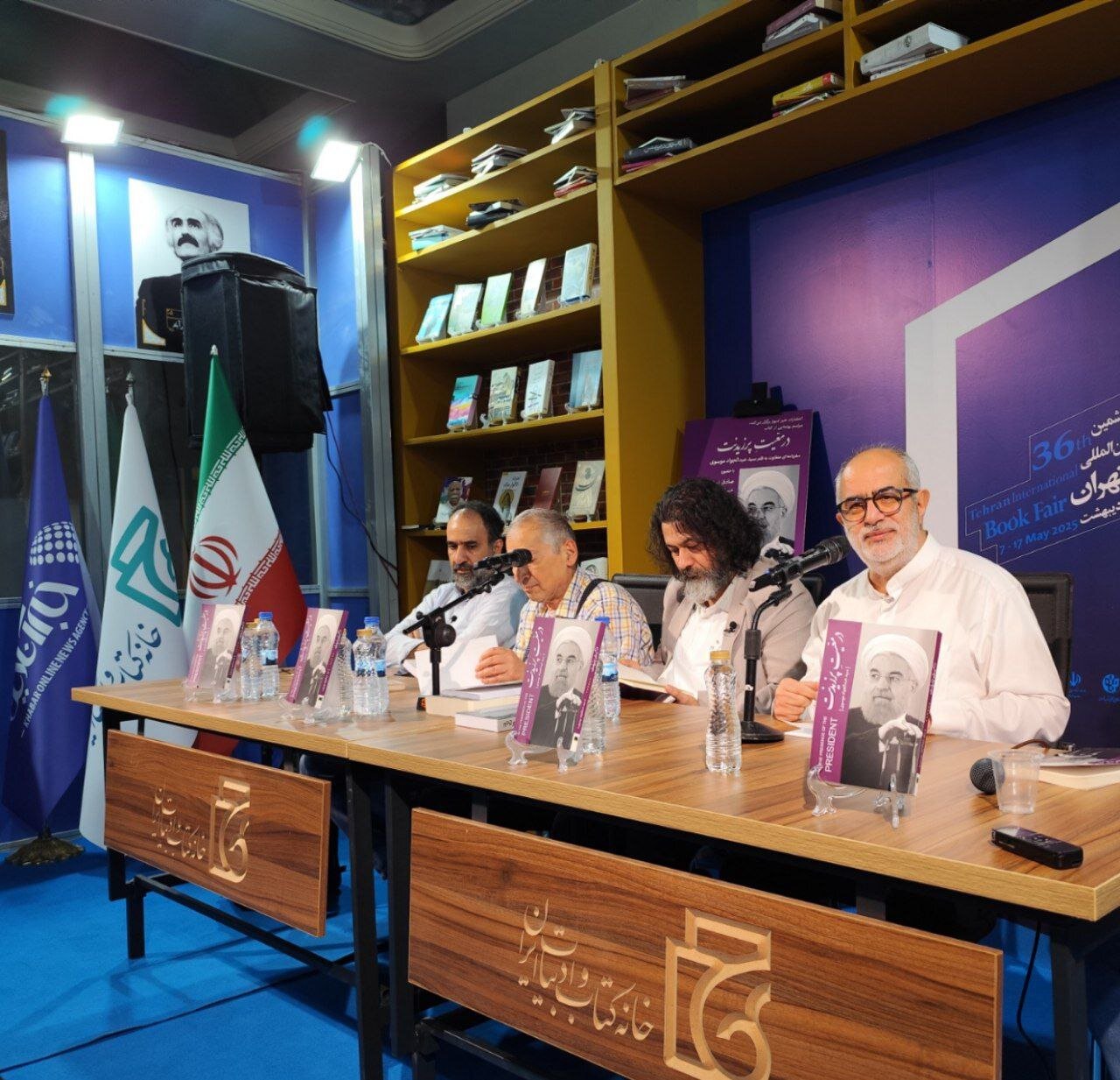 نشست بررسی و رونمایی از کتاب «در معیت پرزیدنت»، سفرنامهای متفاوت همراه حسن روحانی، در نمایشگاه کتاب تهران برگزار شد.