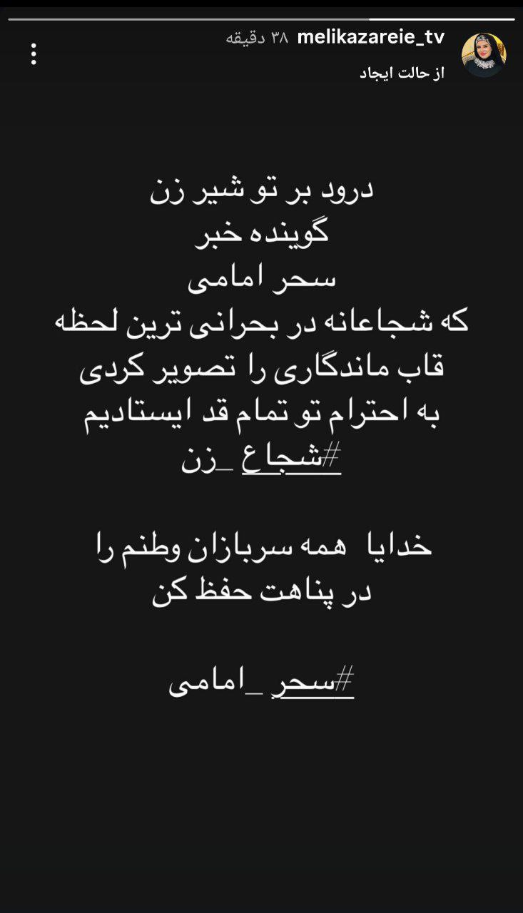 استوری تحسینآمیز ملیکا زارعی برای مجری تلویزیون