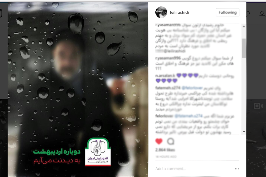 به گزارش ایسنا، این بازیگر تئاتر و تلویزیون در متنی در اینباره نوشته، آورده است: «کار را از مضحکه و بلاهت هم گذراندهاند. برداشتهاند با عکس من و همکاران و دوستانم استیکری با این عنوان ساختهاند که «یک اشتباه را دوبار تکرار نکنیم و به فکر مردم هم باشیم». منظورشان این است که یعنی ما از حسن روحانی برائت جستهایم. احتمالا میخواهند ازین نمد کلاهی برای کسانی بدوزند که سالهاست هرچه من و همصنفانم میکشیم، ریشه در تفکر آنان دارد. اما سرنا را از سر گشادش زدهاند. من لیلی رشیدی، با صدای بلند «تَکرار میکنم» که به رغم تمام کاستیها و مشکلات، دوباره به حسن روحانی رای میدهم؛ برای خودم، برای مردمم و برای ایران. تا کور شود هرآنکه نتواند دید.»