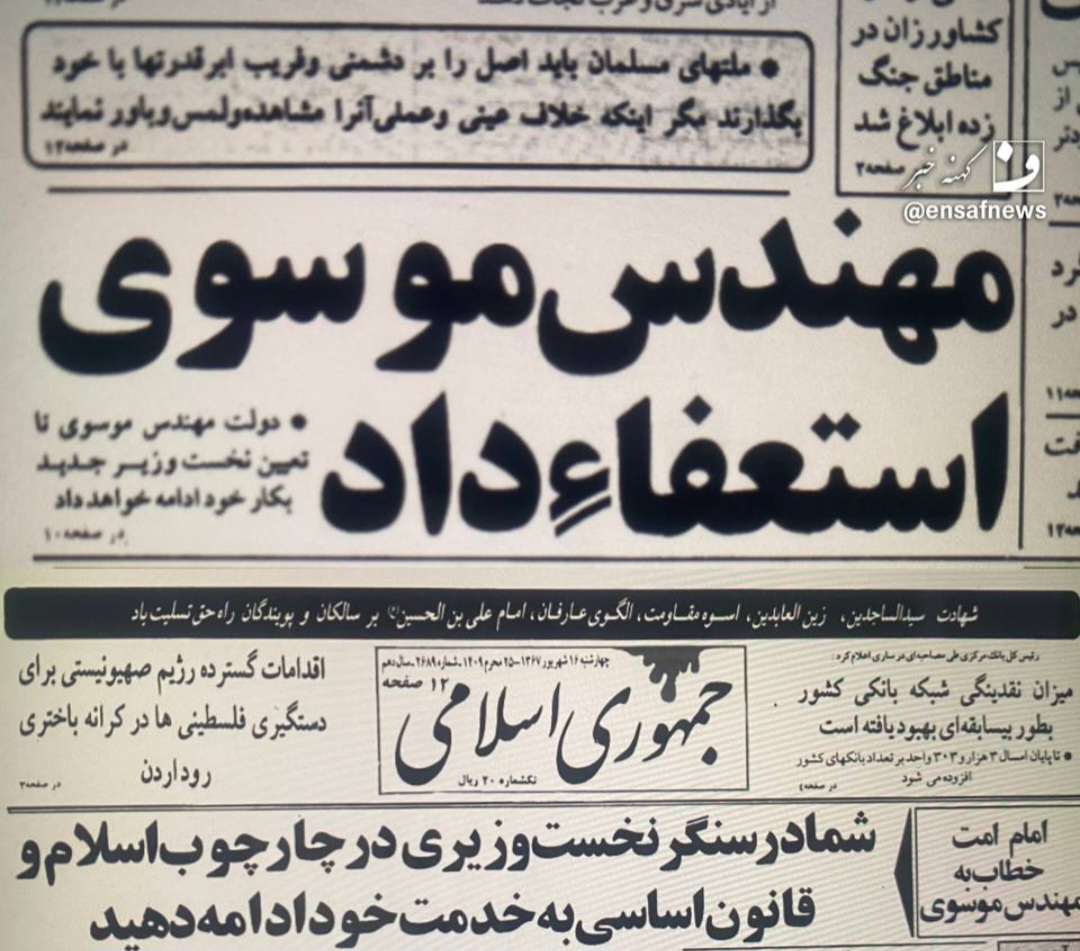 مهندس موسوی استعفا داد [شهریور ۱۳۶۷]