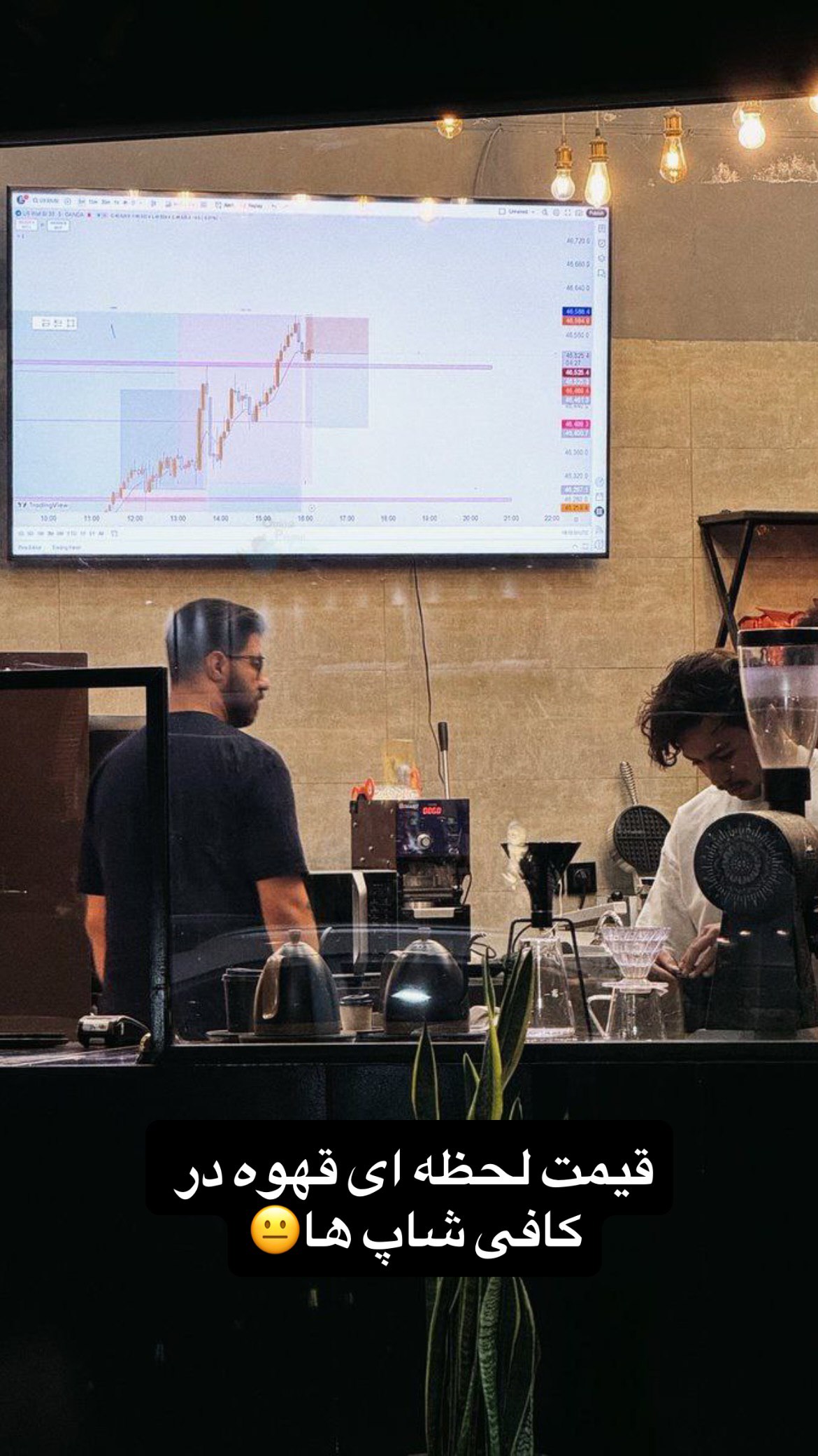 تصویری از تابلوی قیمت لحظهای قهوه در یک کافه
