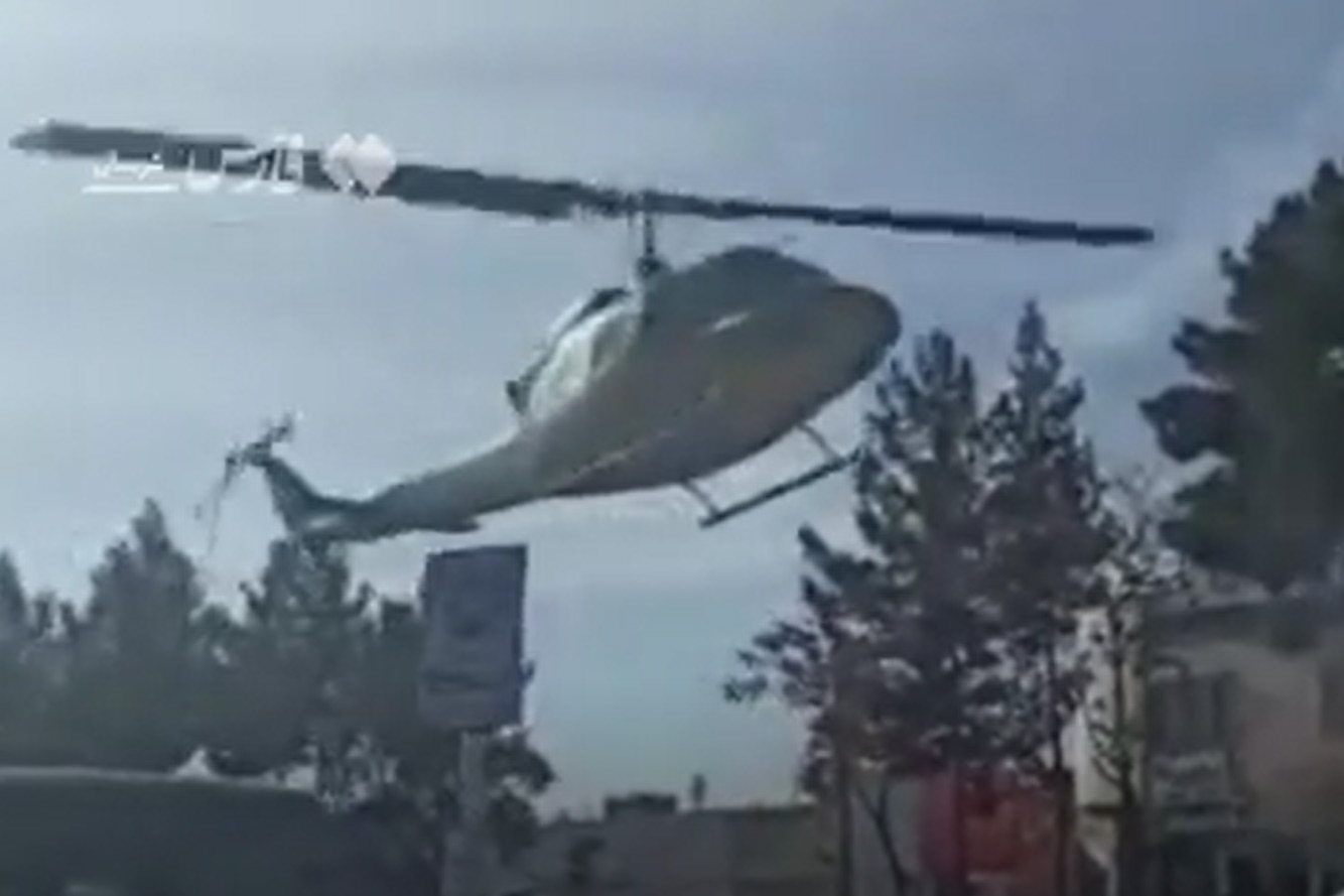 لحظه فرود یک هلیکوپتر وسط چهارراه سپه کرمان