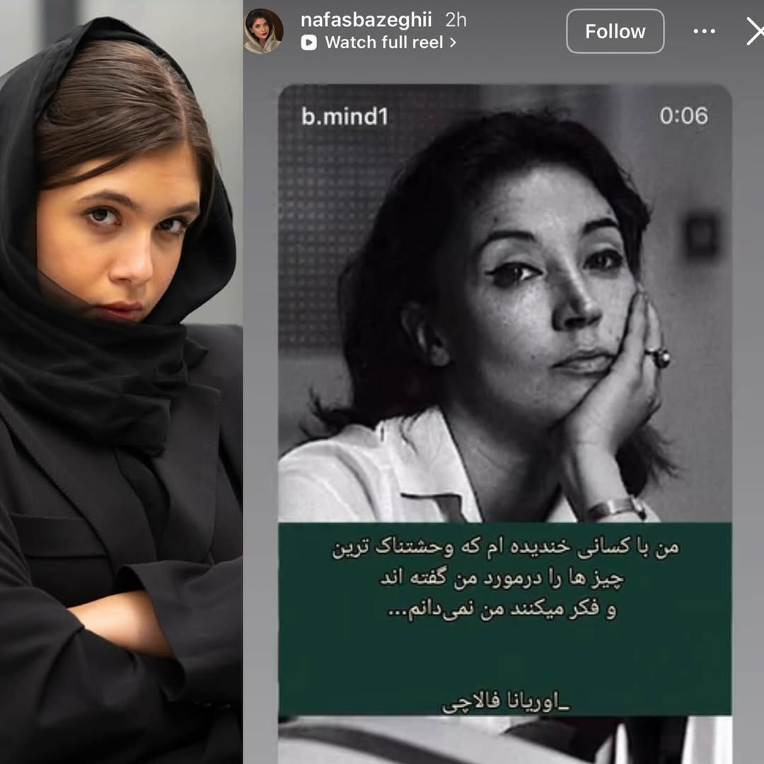 استوری کنایهآمیز نفس بازغی با جملهای از اوریانا فالاچی