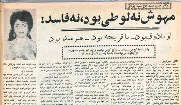 همان مهوش که شما او را از قول دیگران لوطی و رقاص، بدنام و فاسدالاخلاق و بالاخره از سگ کمتر و فاحشه خواندهاید و با وجود این عکس و مطلب او صفحهی سوم و صفحه پنجاهونهم مجلهی شما را رونق بخشیده بود. همان مهوشی که شما را ناچار ساخته بود تحت تاثیر واقعیتی قابل لمس از او به عنوان یک «شخصیت» نام ببرید و بالاخره همان مهوشی که به قول شما برای شنیدن صدای لوند او و به خاطر آن چیز کجش هزاران نفر از همشهریهای شما سر و دست میشکستند. اما نمیدانم چرا شما مهوش را محکوم کردهایم. او را فاسدالاخلاق و لوطی و بدنام نامیدهاید و با وجود این چرا بهترین صفحات مجلهی خودتان را به او اختصاص دادهاید؟