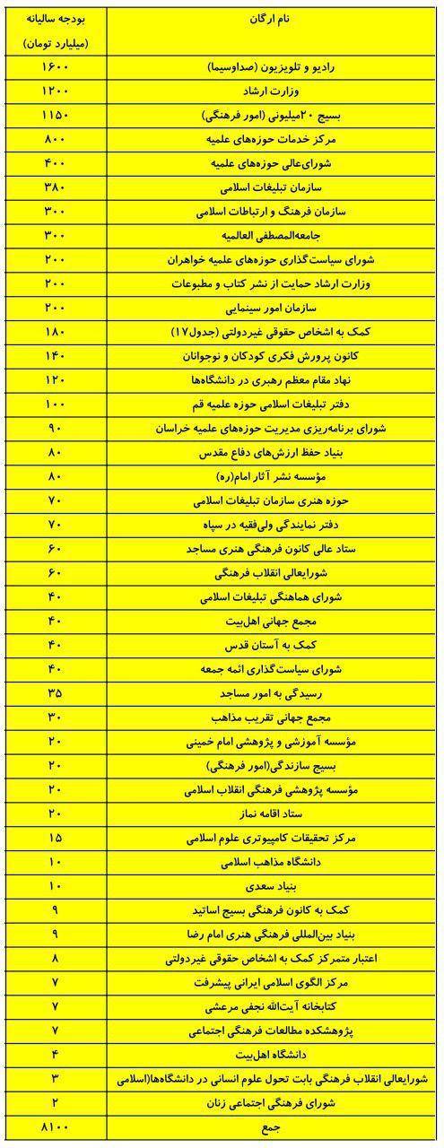 در خطبه‌های گران‌سنگ نماز جمعه تهران (۲۲دی‌ماه) ضمن گلایه از امناء دولت فخیمه در خصوص قلت بودجه‌های مراکز حوزوی که به امور گسترش باورهای مذهبی جامعه اهتمام می‌ورزند، فرمودید که بودجه این نهادها خیلی هم اعداد و ارقام زیادی نیستند و به‌پای برخی از دانشگاه‌ها هم نمی‌رسند. بنده جسارتا بودجه سال گذشته ۴۴موسسه، سازمان، نهاد و بنیادی که در امور فرهنگی – مذهبی فعالیت می‌کنند را جهت استحضار به محضر ارجمندتان جمع‌آوری کرده و در پایان با بودجه‌های برخی از دانشگاه‌ها بعلاوه محیط‌زیست و جنگلبانی کشور مقایسه نموده‌ام.