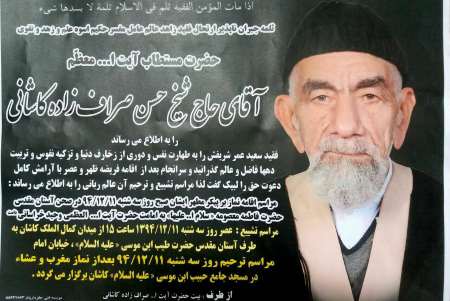 در پی درگذشت آیت الله صراف زاده، مفسر قرآن و مدرس حوزه های علمیه کاشان، آیت الله حاج شیخ حسین…