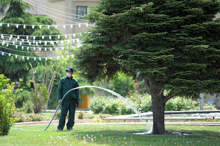 اینکه چقدر آب در تهران صرف فضای سبز شود، عدد و حساب و کتابش با مهندسان شهرداری یا مدیران نیست. این رقم را کارگرانی تعیین میکنند که صبح شیر آب را باز میگذارند، به کارهای دیگرشان میرسند و ظهر که میشود دوباره آن را میبندند. در این چند ساعت گاهی آب به بزرگراهها سرریز میکند. کمتر کسی میداند که پیمانکاران تلاش میکنند با کمترین میزان نیرو این عرصهها را آبیاری کنند. کارگرانی هم که پیچ شیر آب دستشان است، از آنچه در زیر زمین میگذرد بیخبرند، آنها با دستودلبازی فضای سبز شهر را مشروب میکنند تا کارفرما از کارشان راضی باشد و اندک حقوقشان پرداخت شود. بااینحال، آنچه در این پروسه به چشم نمیآید عددی است از مصرف آب برای فضای سبز پایتخت. کارشناسان این عدد را تا ۲۰۰ میلیون مترمکعب برآورد کردهاند. همچنین جمعیت تهران و شهرهای اطراف در حال افزایش است، تأمین آب شرب این جمعیت یک موضوع است و تأمین آب آبیاری فضای سبز رو به گسترش هم موضوعی دیگر. پیشتر و در سال ۱۳۹۹ تفاهمنامهای میان شهرداری تهران و وزارت نیرو با هدف تأمین آب مورد نیاز فضای سبز پایتخت از پساب، منعقد شده بود که طبق آن، قرار بود طی دورهٔ زمانی ۱۱ ساله (۱۴۱۰-۱۴۰۰) مصرف پساب برای آبیاری فضای سبز کلانشهر تهران ۱۳۸ میلیون مترمکعب در سال افزایش پیدا کند و به موازات آن مصرف آبهای زیرزمینی ۵۳ میلیون مترمکعب کاهش یابد. این تفاهم اجرا نشده است.
