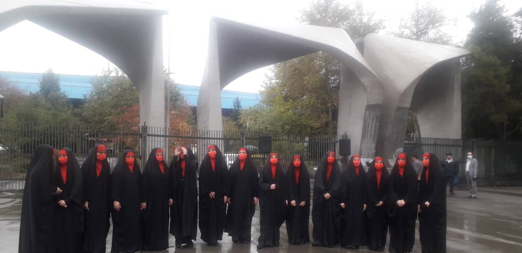 عکس چند زن چادری با روسری قرمز مقابل دانشگاه تهران [+واکنشها]