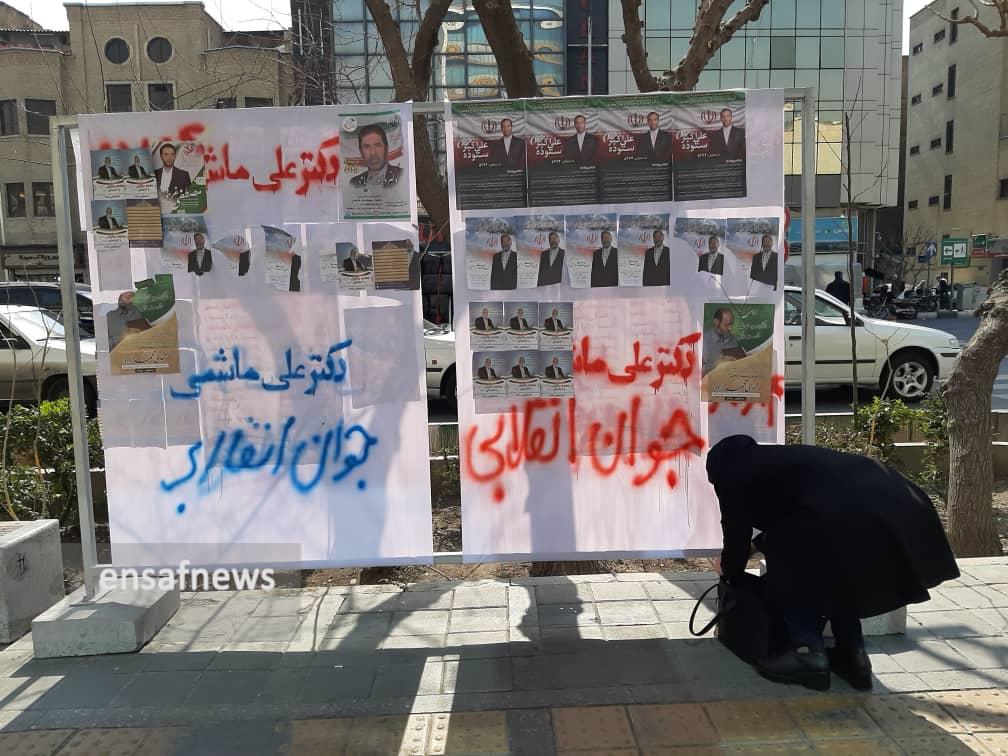پوستر انتخاباتی از نامزدهای بدون لیست تا نامزدهای که در لیستهایی از جریانهای فکری مختلف جای گرفتهاند، تعداد تبلیغات نسبت به روزهای دیگر آنقدر زیاد است که رقبا پوسترهای خود را روی پوسترهای دیگر نامزدها چسباندهاند. در جنوب میدان بنر سفید رنگ با تبلیغات پروانه مافی، غلامحسین رضوانی، سمیرا ذوالفقاری، علی اکبرستوده و افشین خلیلی پر شده است، اما زیر این پوسترها هم تبلیغاتی دیگر چسبیده که به دلیل انبوه پوستر چیزی از آنها مشخص نیست.