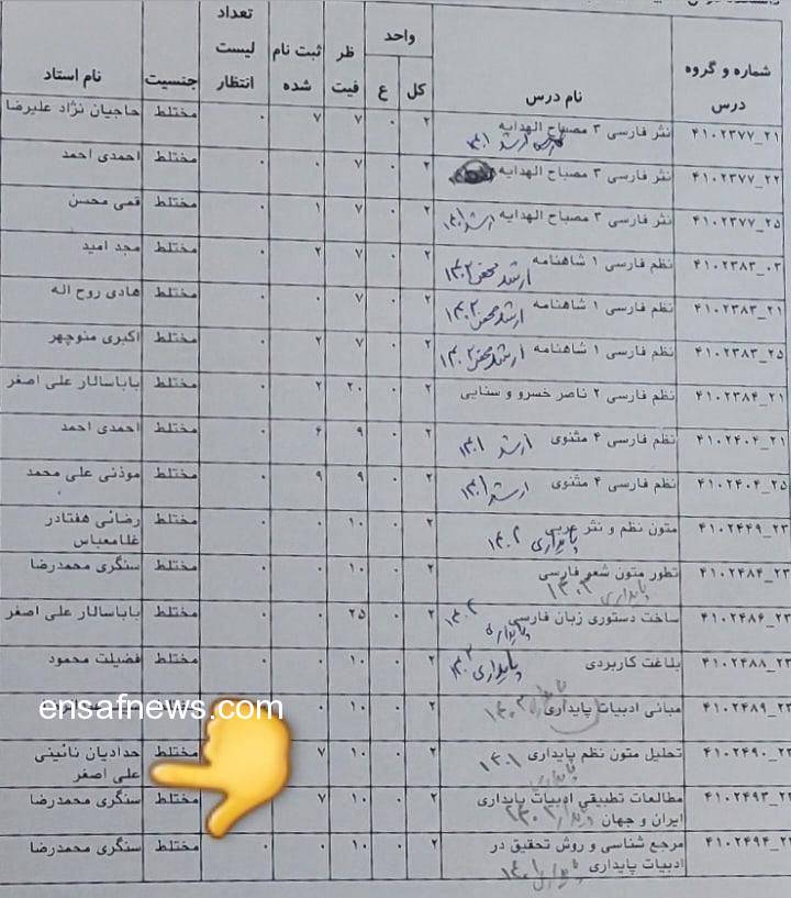 حدادیان بهانه است برای واکاوی تخصص دیگر استادان با واحدی که تدریس می کنند !!!