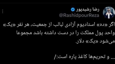 کنایه رضا رشیدپور به سقوط ارزش پول ملی
