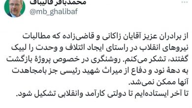 پیام تشکر قالیباف از زاکانی: تا آخر میمانم