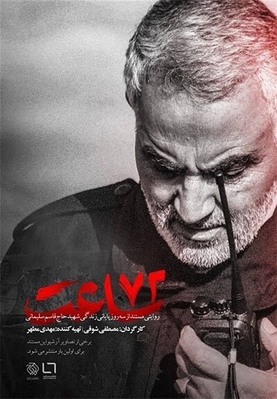 خبرگزاری ایسنا نوشت: مستند «۷۲ ساعت» روایتی از هفتاد و دو ساعتِ آخر حیاتِ سردار دل‌ها حاج قاسم سلیمانی چهارشنبه (۶ دی ماه) ساعت ۲۲:۳۰ از شبکه تهران روانه آنتن می‌شود.