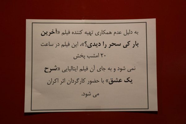 مدیر روابط عمومی جشنواره فیلم شهر درباره اکران نشدن فیلم «آخرین بار کی سحر را دیدی؟»، گفت: بعلت پرداخت نکردن حق پخش به تهیه کننده ، او در تماسی تلفنی از ما خواست این فیلم اکران نشود.