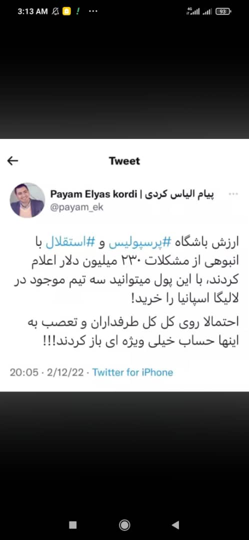 توییت جالب یک فعال بازار سرمایه درمورد ارزشگذاری استقلال و پرسپولیس