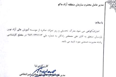جوابیه ی سازمان منطقه آزاد ماکو به یک نامه