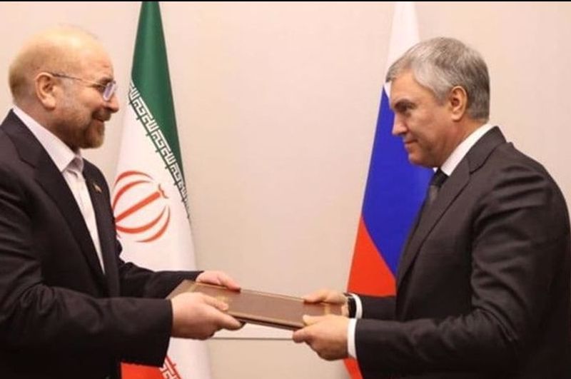 محمدباقر قالیباف، رئیس مجلس شورای اسلامی پیام رهبری انقلاب خطاب به ولادیمیر پوتین را به رئیس مجلس دومای روسیه تقدیم کرد.
