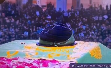 بوسه فرزند سردار قاسم سلیمانی بر تابوت پیکر رئیسی و همراهانش