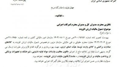 این کالاها مشمول مالیات بر ارزش افزوده شد