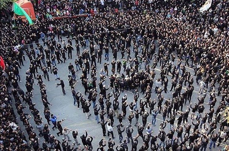 از پدر نقل شد که این آیین و همچنین سینه دورى در ایام دهه عاشورا از محل آبپخش شروع مىکردیم و به سمت منزل مرحمت میرزا محمدرضا نعیمى که محل برپایى روضه خوانى ایام محرم و صفر بود، مىرفتیم.