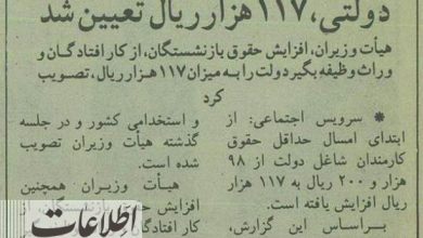 هیات دولت وقت در سال ۱۳۷۳ حداقل حقوق کارمندان را افزایش داد. اطلاعات آنلاین: تابستان سال ۱۳۷۳ دولت ششم به…